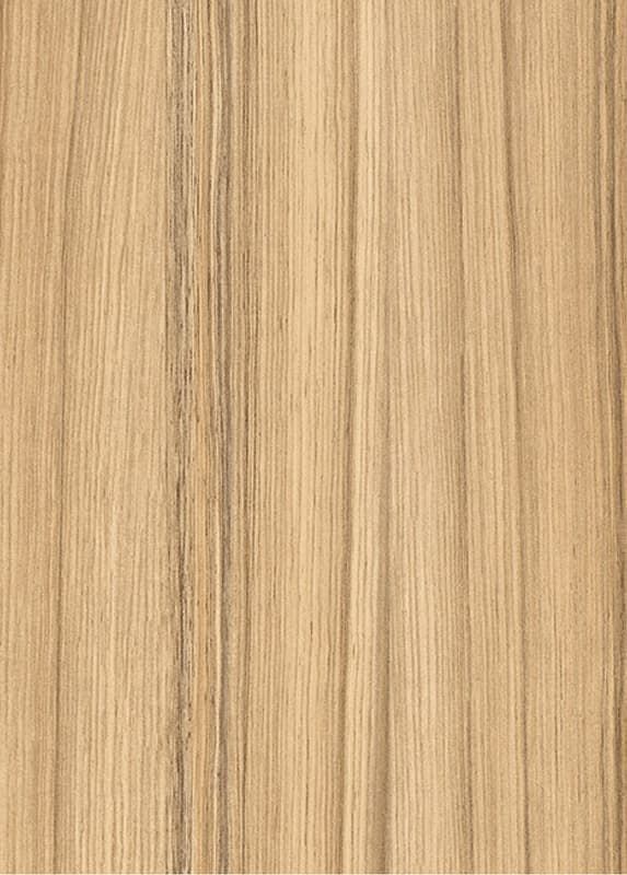 Имитация экзотической древесины Кокоболо натуральный привлекает к себе внимание за счет ярко выраженных темных линий в своей текстуре на фоне очень светлого основного цвета. Линии в его рисунке становятся еще более выразительными за счет линейного рельефа структуры ST22 Линейные глубокие поры. В помещениях такой декор подчеркивает горизонтальные формы и поэтому очень популярен, например, в качестве декора стоек и прилавков. В комбинациях с ним можно создавать яркие цветовые акценты и контраст с темными коричневыми декорами.