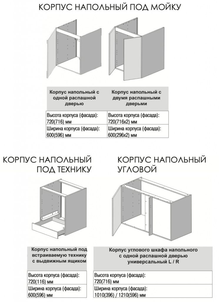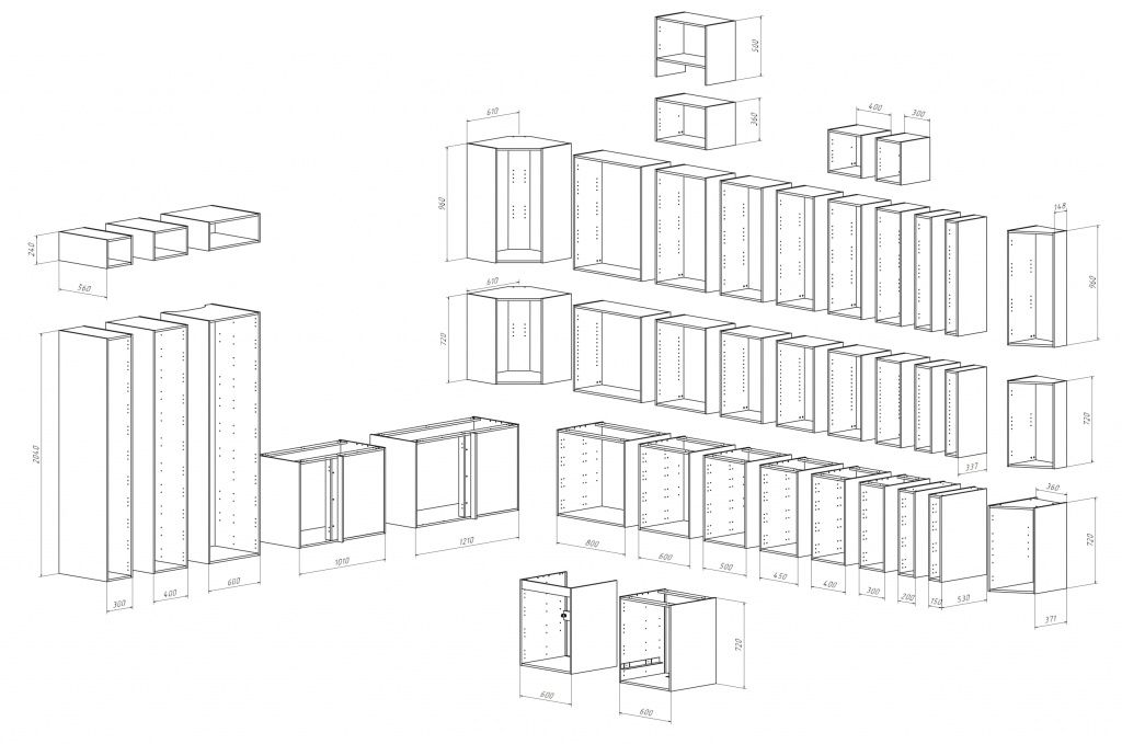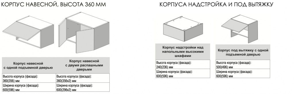 В нашей компании вы можете приобрести отдельно шкафы для кухни, полки к ним, детали кухонных ящиков, а также всю необходимую фурнитуру. Выбор типоразмеров корпусов шкафов для кухни позволит вам как из конструктора собрать готовую кухню. Мы можем укомплектовать ваш заказ фасадами АГТ или АЛВИК по индивидуальным размерам ваших фасадов. Корпуса кухонных шкафов представлены в вариантах -навесные, напольные и надстройки. Кухонные фасады изготавливаются под требуемые размеры на заказ 5 рабочих дней из тех декоров, которые у нас в наличи.